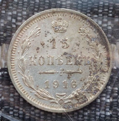 Российская Империя 15 копеек 1916 год. Николай II. СПБ/BC, UNC. Серебро! Сторгуй за свою цену, предложи обмен!