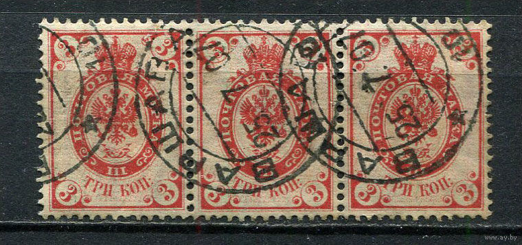 Российская империя - 1889/1904 - Герб 3 коп - (сцепка 3 марки. Гашение Варшава) - [Mi.47x] - 1 марка. Гашеная. (Лот 22HW)-TG3P25