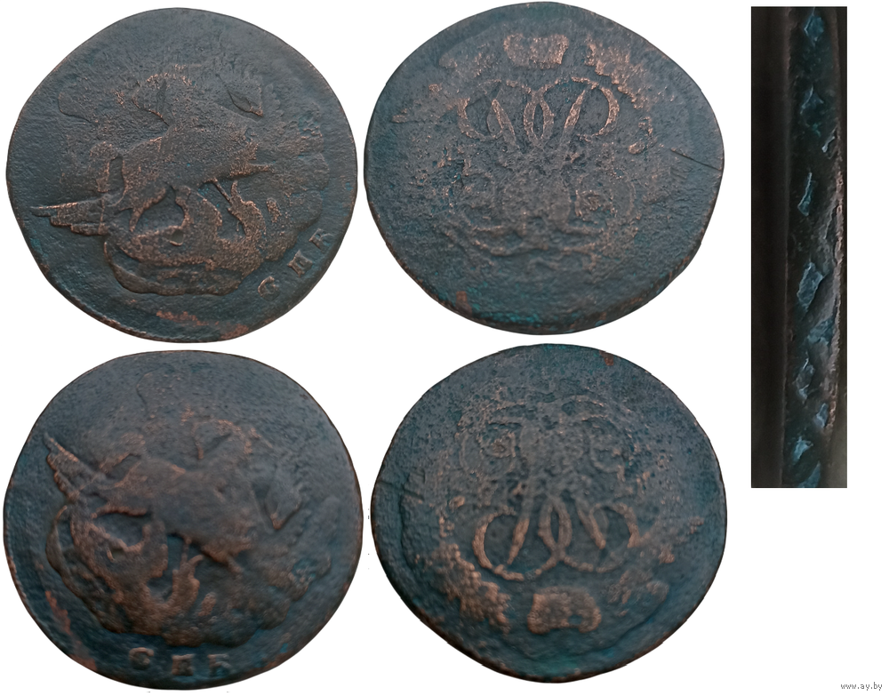 РОССИЙСКАЯ ИМПЕРИЯ. 2 копейки 1757. Перечекан с облачной копейки.