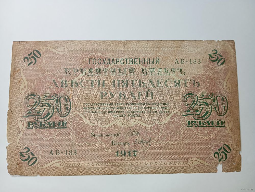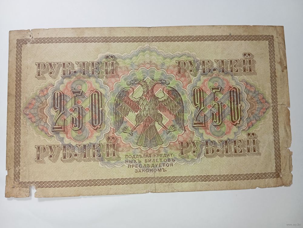 Российская империя 250 рублей 1917 года . Шипов - П. Барышев . С рубля .