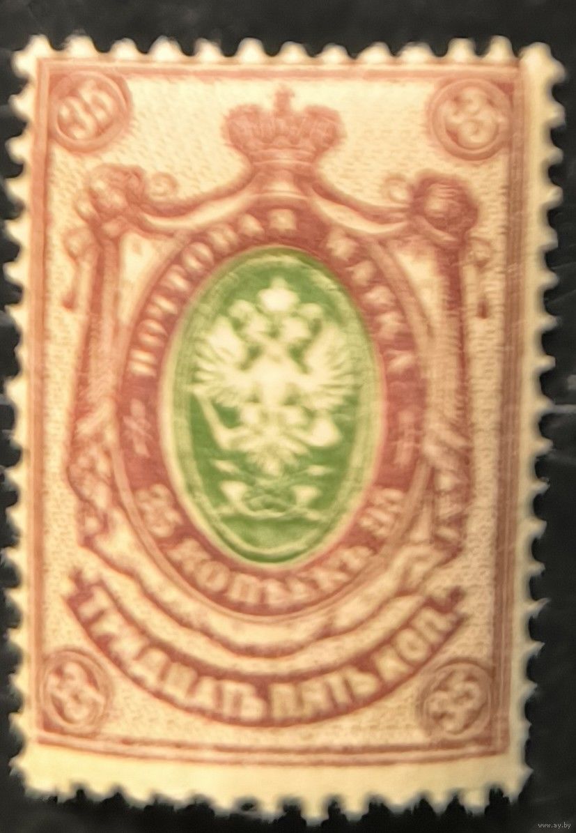 Российская Империя. Девятнадцатый выпуск. 35 копеек. Абкляч центра. № 105Те (Загорский).