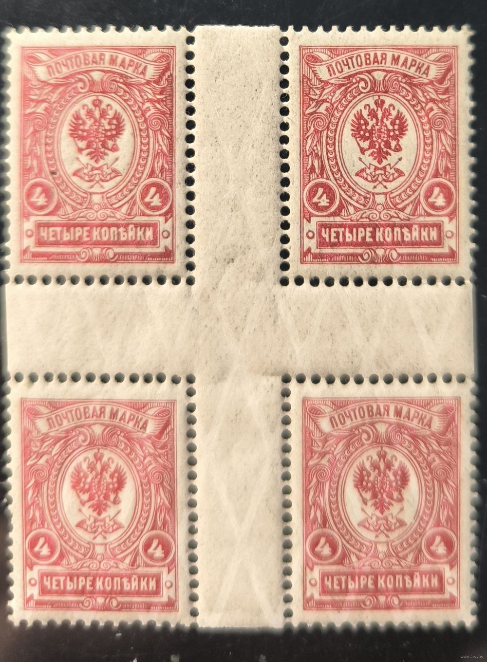 Российская Империя. Девятнадцатый выпуск. 4 копейки. Крест. № 97 (Загорский). Квартблок.