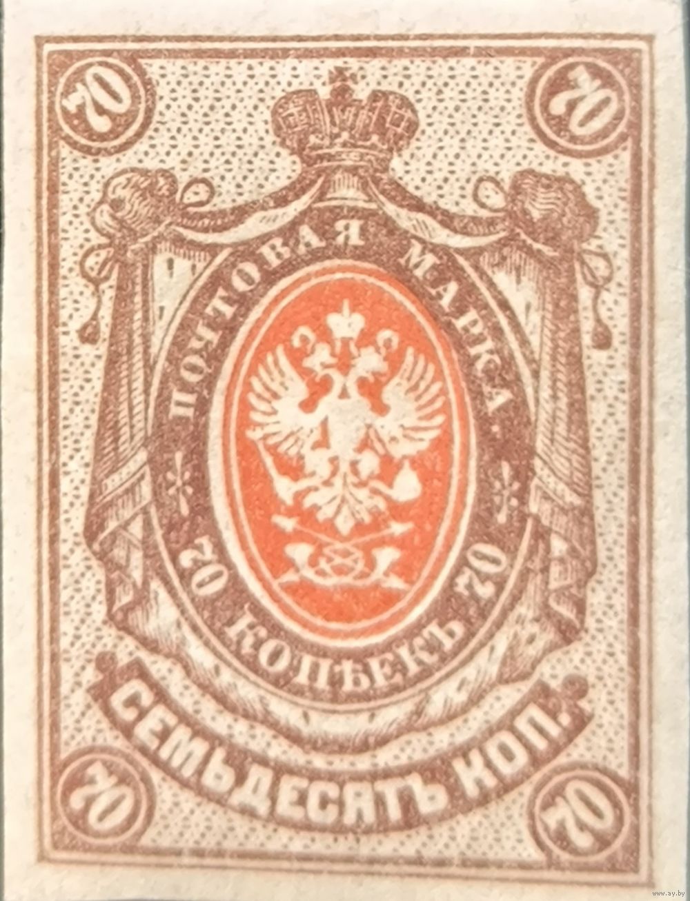 Российская Империя. Двадцать шестой выпуск. 70 копеек. Абкляч центра. № 151Тс (Загорский).