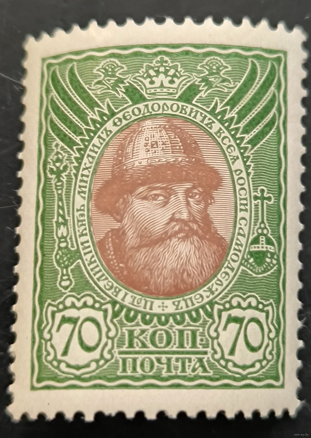 Российская Империя. Двадцатый выпуск. "300-летие дома Романовых". 70к. Михаил Федорович. № 121 (Загорский).