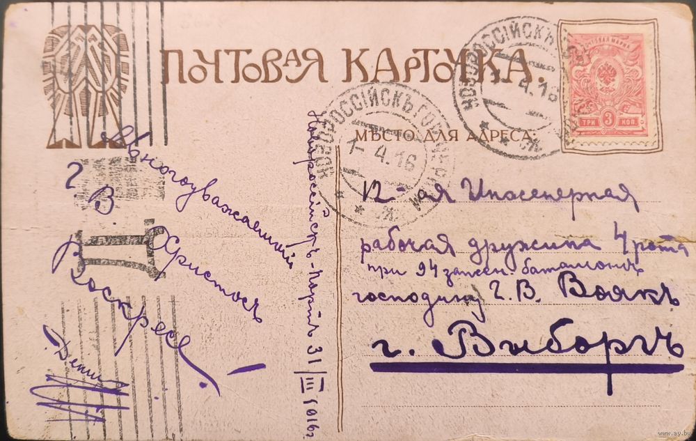 Российская Империя. Иллюстрированная почтовая карточка "Христос Воскрес". 1 Мировая война. 4 рота 12 саперной рабочей дружины.