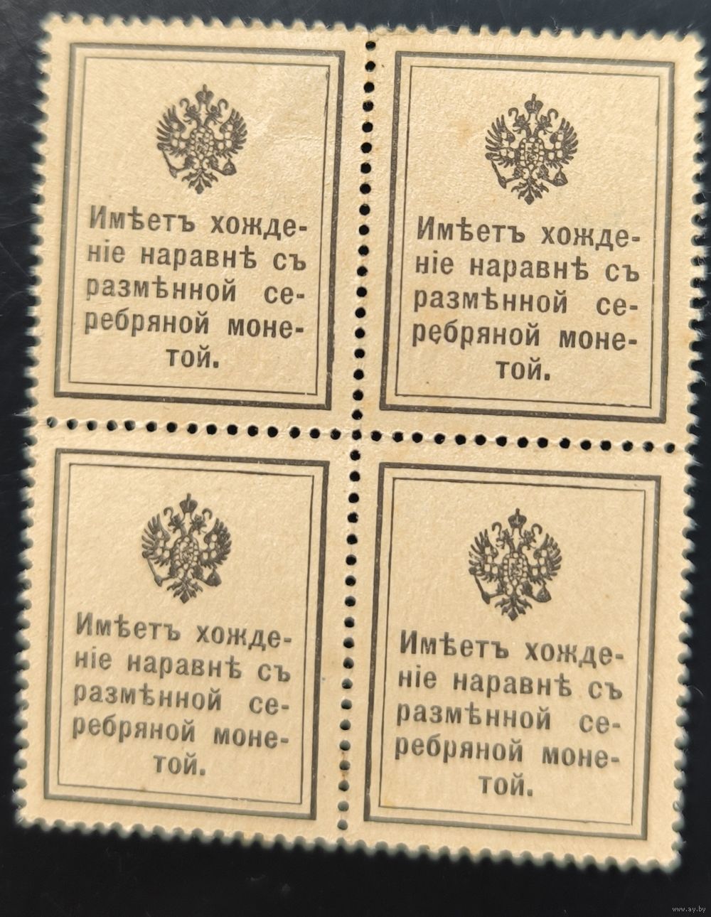 Российская Империя. Марки-деньги. Первый выпуск. 10к. Квартблок. № С1 (Загорский).