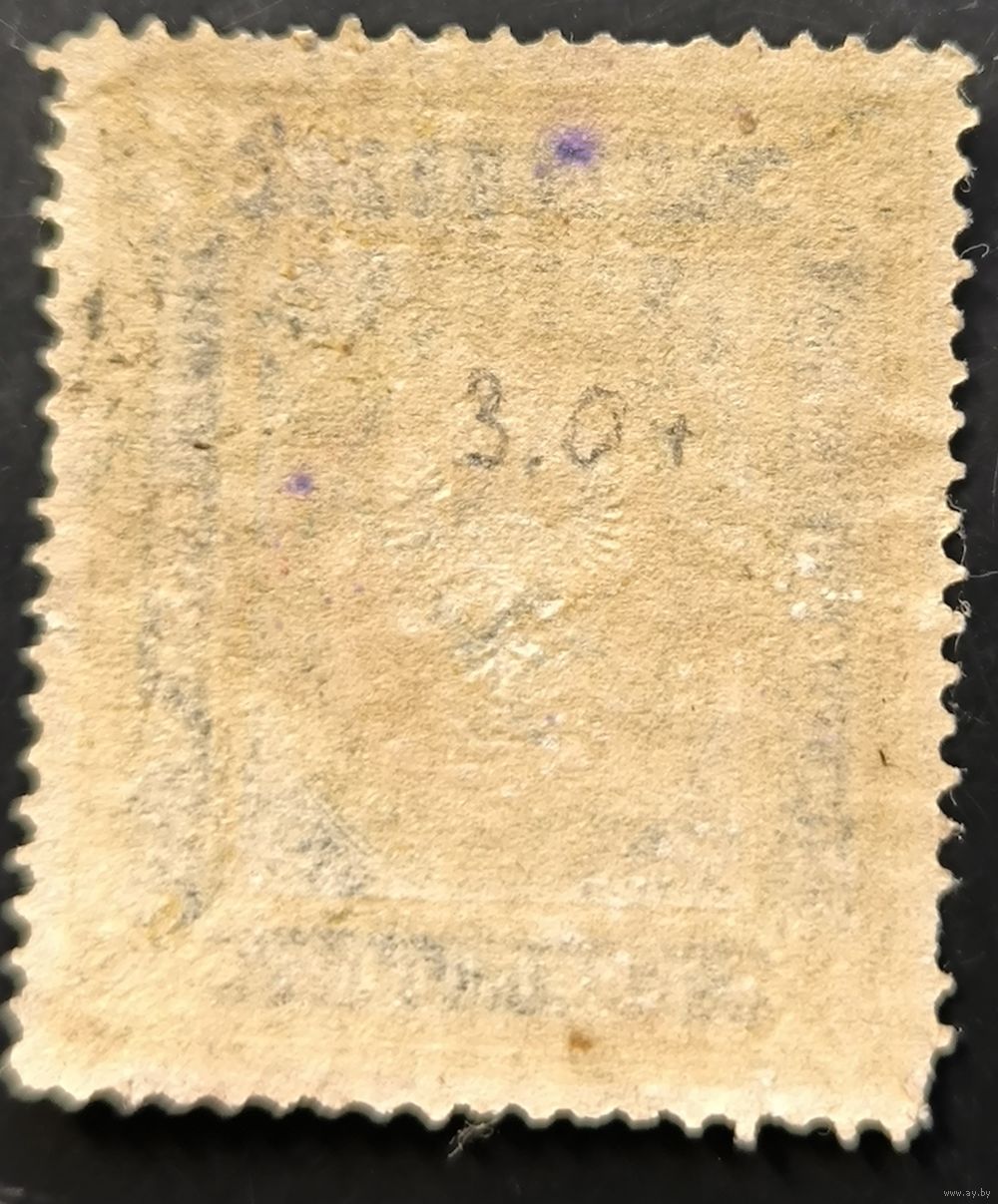 Российская Империя. Русская почта в Китае. Шестой выпуск. 7 dollars. № 62 (Крамаренко). Угол наклона текста "7 dollars" 40 градусов.
