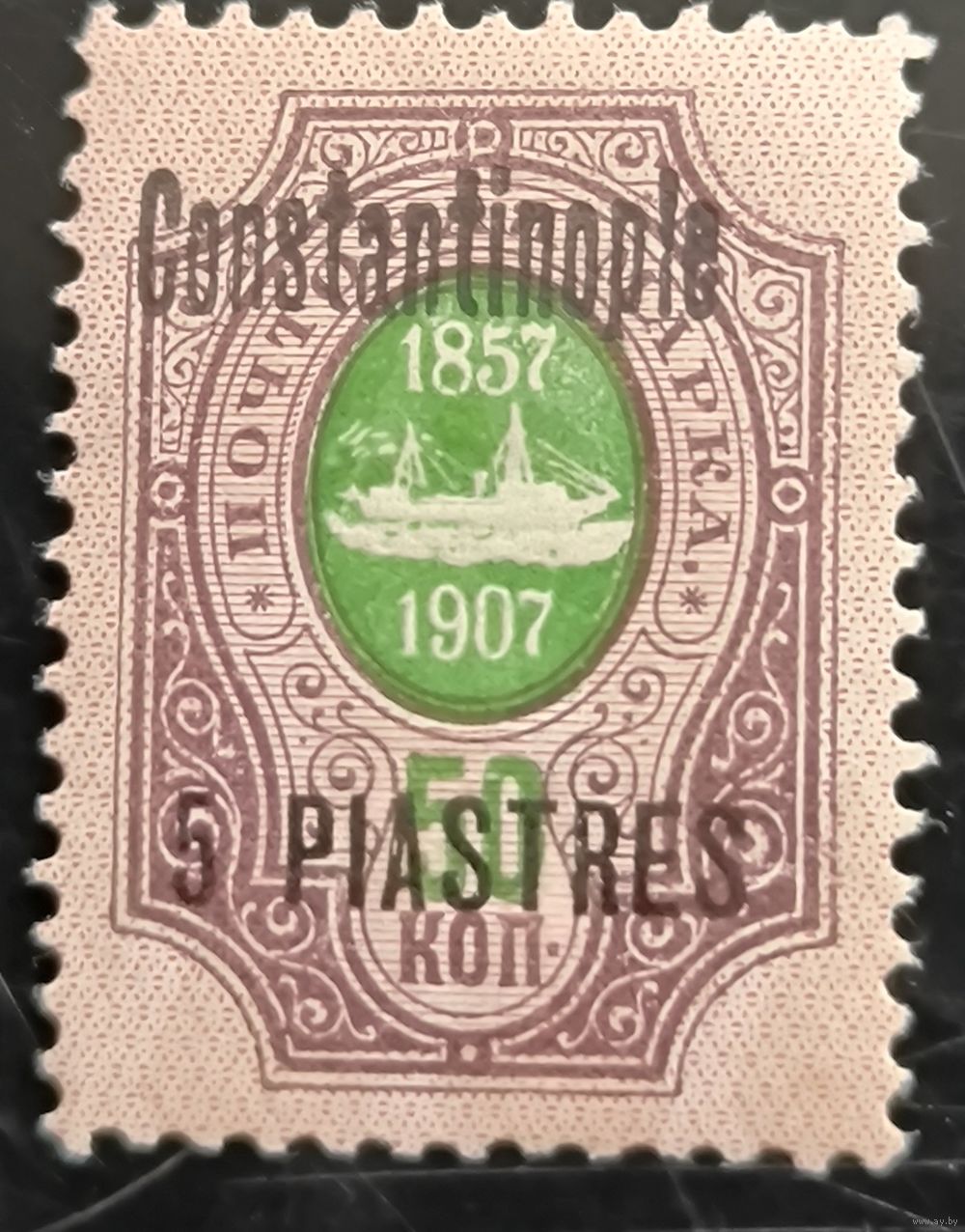 Российская Империя. Русская почта в Турции (Левант). Надпечатка "Constantinople". 5 piastres. № 70 I (Крамаренко).