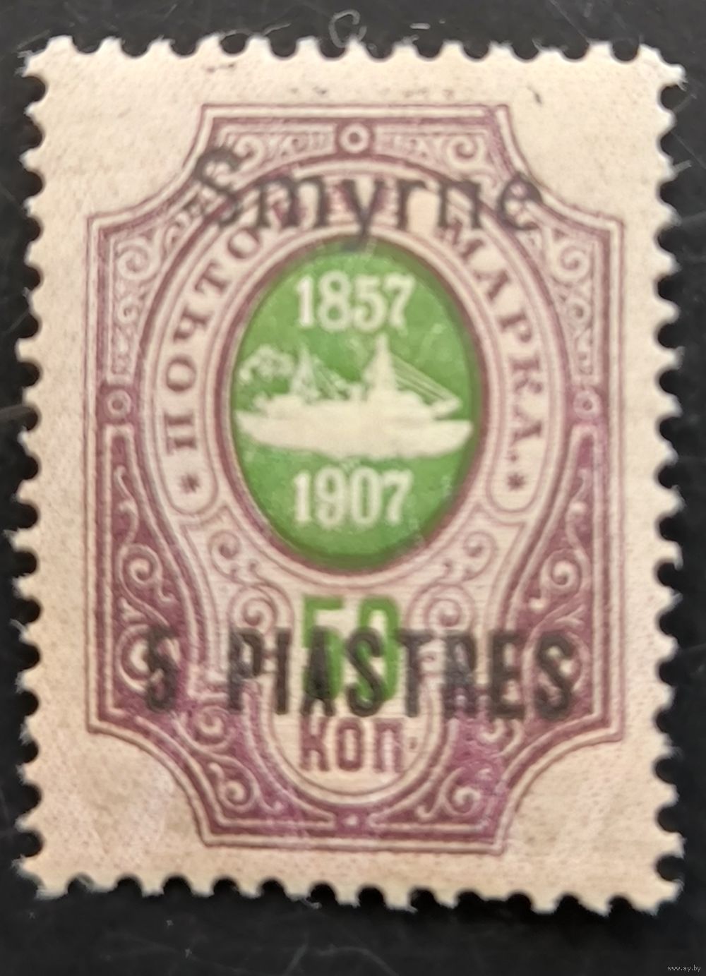 Российская Империя. Русская почта в Турции (Левант). Надпечатка "Smyrne". 5 piastres. № 70 VII (Крамаренко).