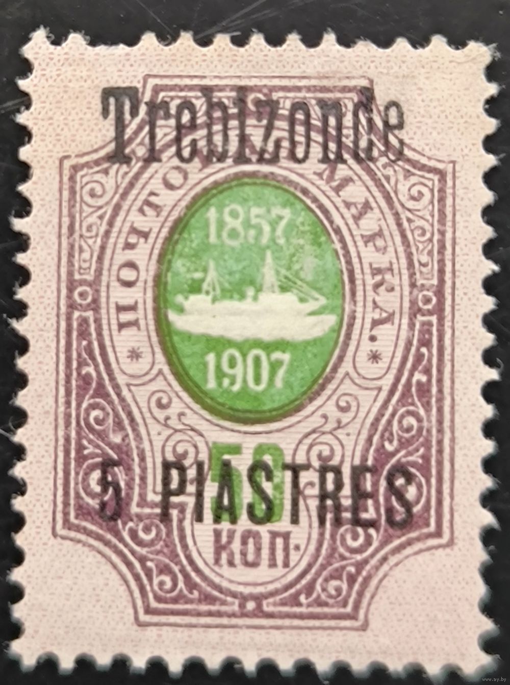 Российская Империя. Русская почта в Турции (Левант). Надпечатка "Trebizonde". 5 piastres. № 70 VI (Крамаренко).