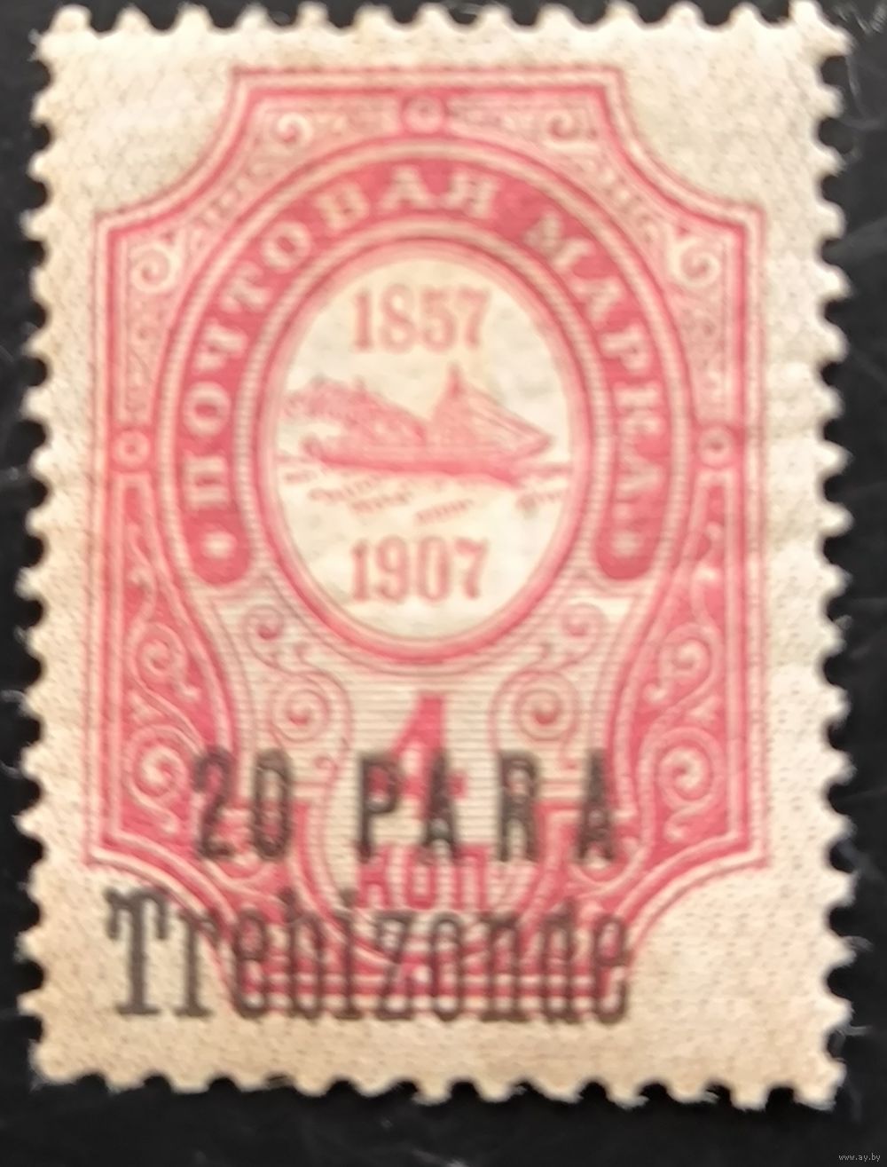 Российская Империя. Русская почта в Турции (Левант). Надпечатка "Trebizonde". 20 para. № 68 VI Td (Крамаренко). Разновидность - Надпечатка "Trebizonde" расположена ниже надпечатки номинала.