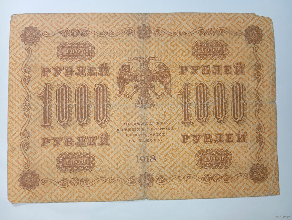 Российская империя ( Временное Правительство ) , 1000 рублей 1918 года . Кассир - М. Онишкь . С рубля .