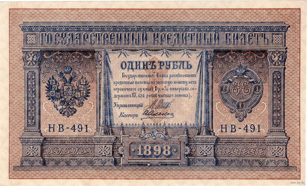Россия, 1 руб. обр. 1898 г. Шипов - Алексеев, НВ-491