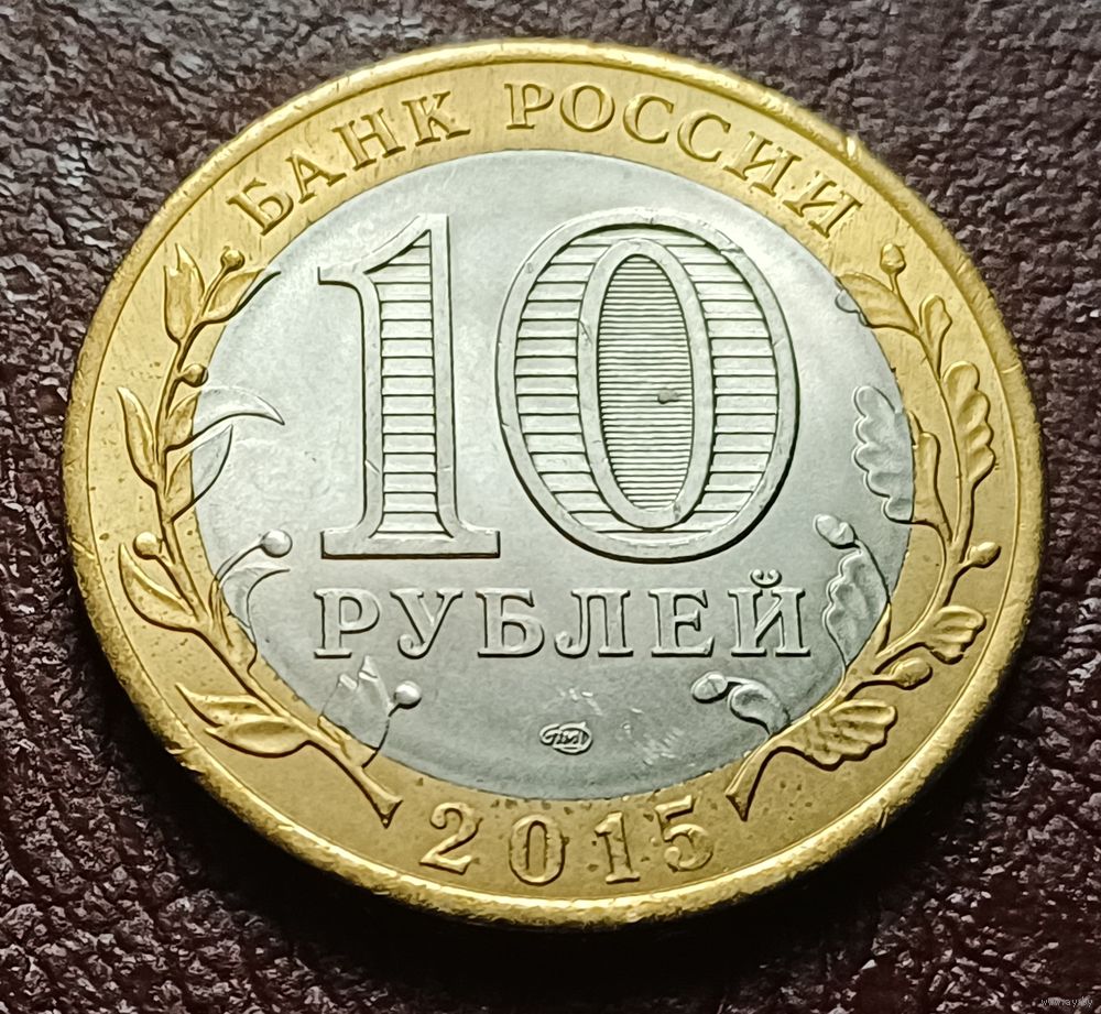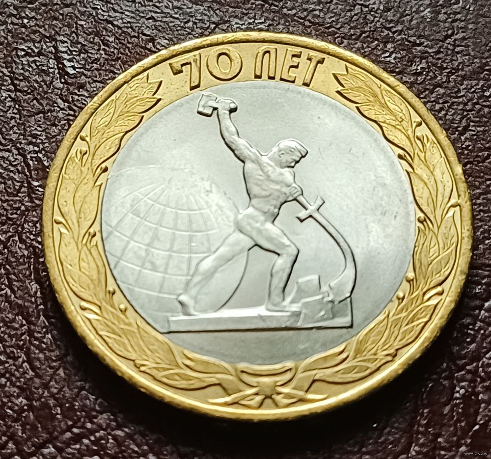 Россия 10 рублей, 2015 70 лет Победе - скульптура ( Перекуём мечи на орала ) в Нью-Йорке ( 2-7-4 )