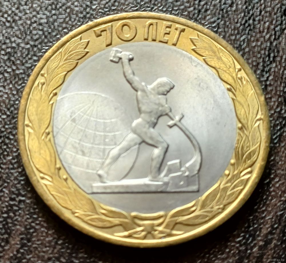 Россия 10 рублей, 2015 70 лет Победе в ВОВ - скульптура "Перекуём мечи на орала" в Нью-Йорке ( 1-9-5 )