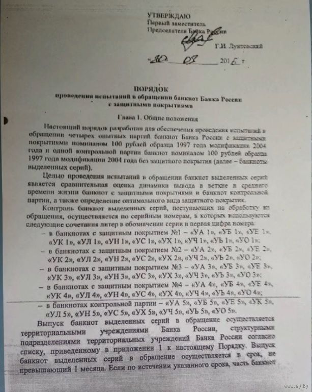 Экспериментальные банкноты 2016 г. Опыт 5 (Опытные К), Контрольные.