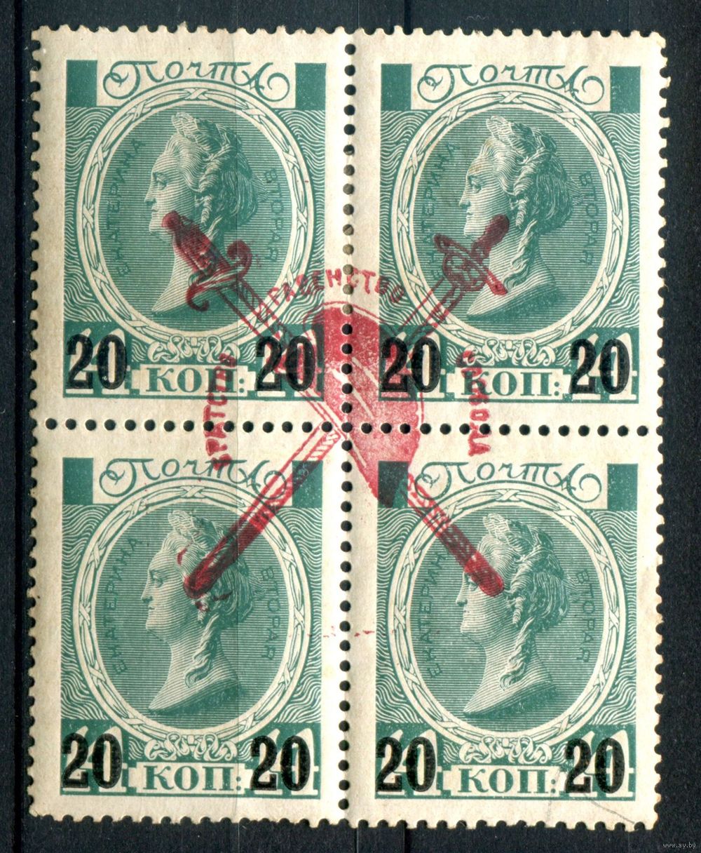 Россия - 1917г. - Романовы, Екатерина II, надпечатка Фригийский колпак - 1 кварт - MH. #4-W2-118-A-1