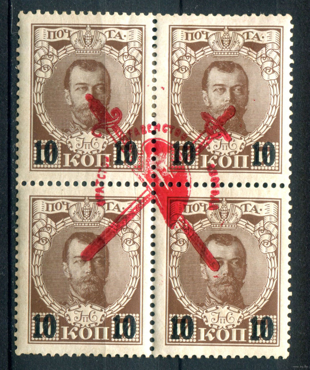 Россия - 1917г. - Романовы, Николай II, надпечатка Фригийский колпак - 1 кварт - MH, слегка потрескавшийся клей. #4-W2-118-A-1