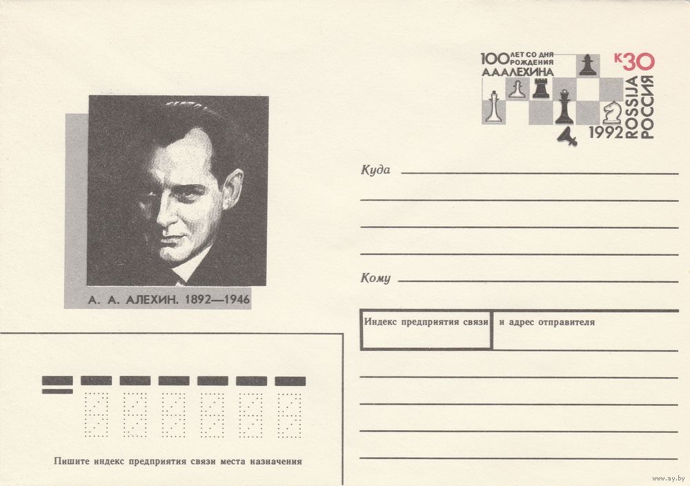 Россия 1992 ХМК с ОМ 100 лет со дня рождения А.А. Алехина (к3)