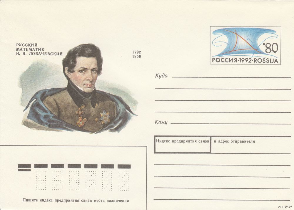 Россия 1992 ХМК с ОМ 100 лет со дня рождения Н.И. Лобачевского (к3)