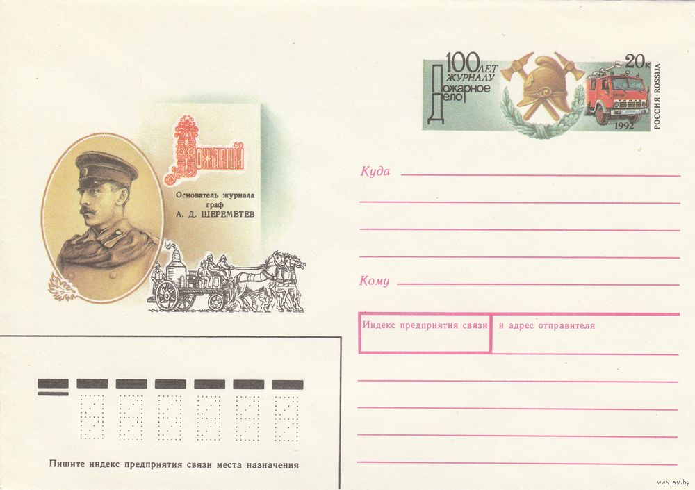 Россия 1992 ХМК с ОМ 100 лет журналу Пожарное дело (к3)