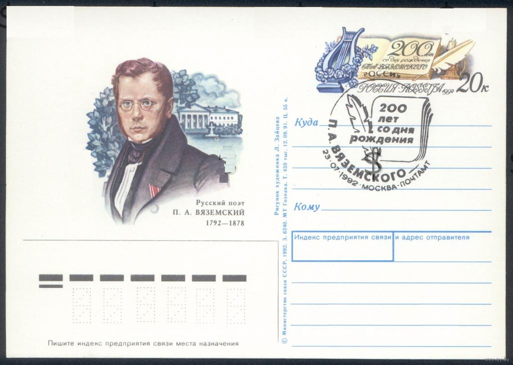 Россия 1992 ПК с ОМ П.А. Вяземский СГ