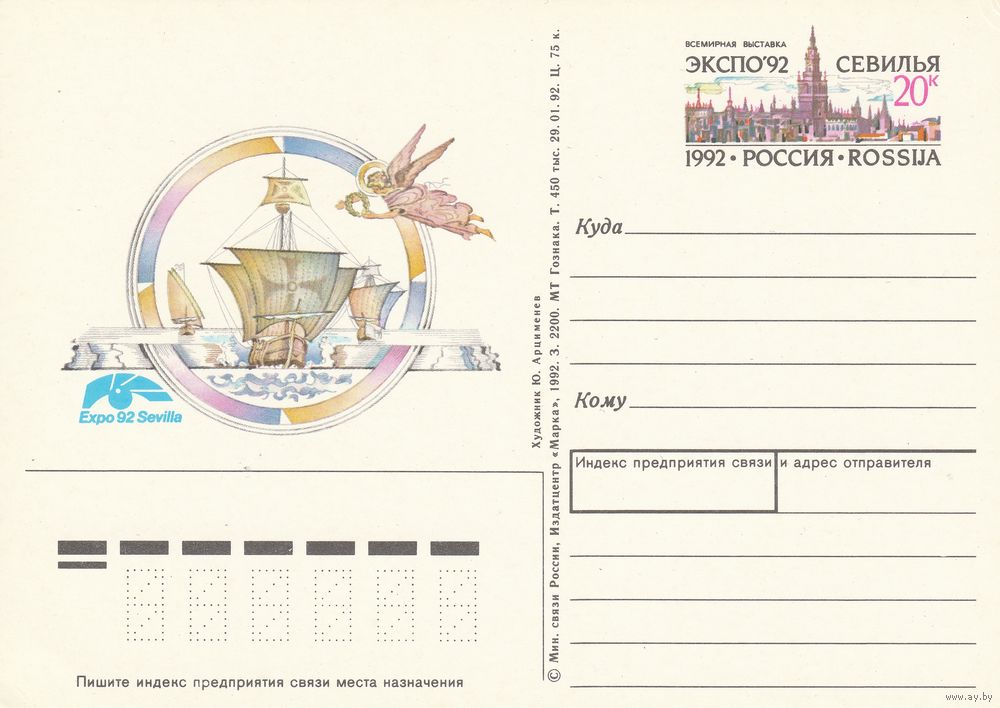 Россия 1992 ПК с ОМ Всемирная выставка Экспо-92. Севилья (к3)