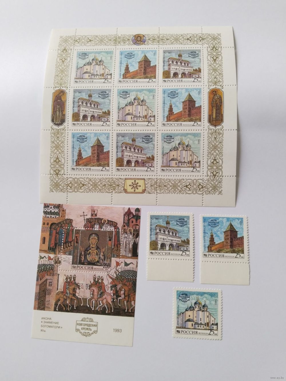 Россия 1993 3 м+бл.+обш.м/лист Новгородский Кремль
