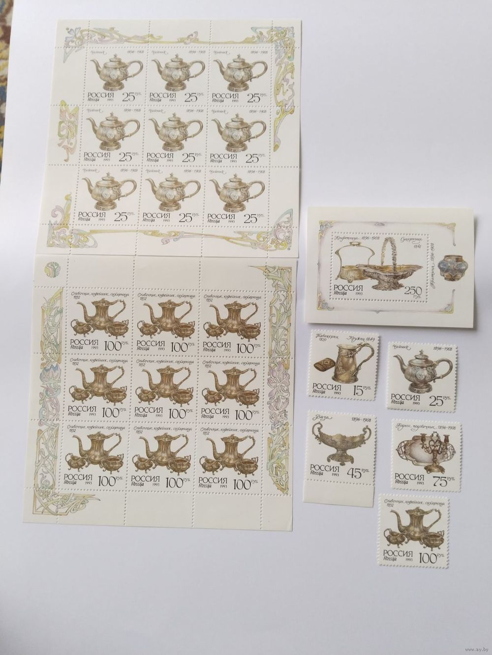 Россия 1993 5 м+бл.+2 м/листа посуда из серебра