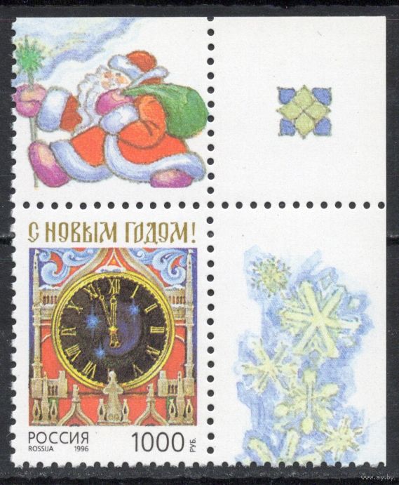 Россия 1996. С Новым годом. 1 марка угол листа 325 (181)