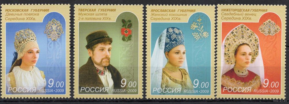Россия 2009. Народные костюмы. Головные уборы. 4 марки 1356-59