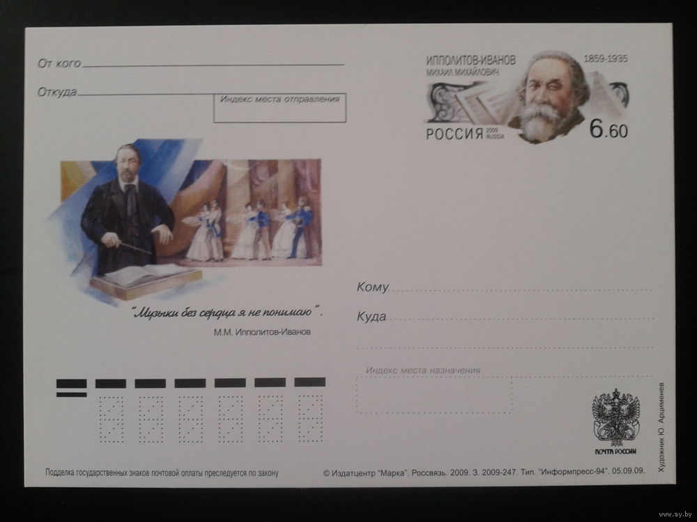 Россия 2009 ПК с ОМ Композитор Ипполитов-Иванов