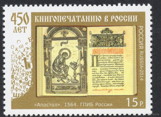 Россия 2014. 450 лет книгопечатанию в России. 1 марка 1868 (1154)