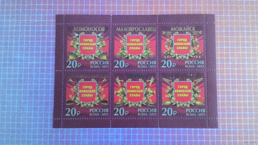 Россия, 2015. Лист марок серии "Города воинской славы".