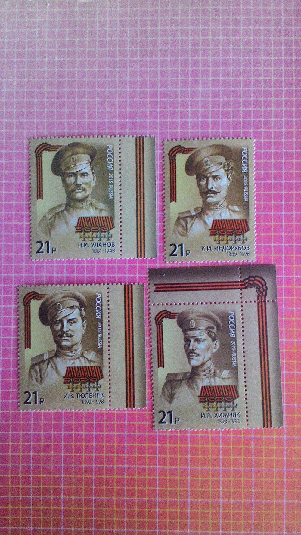 Россия, 2015. Марки серии "Герои Первой мировой войны".