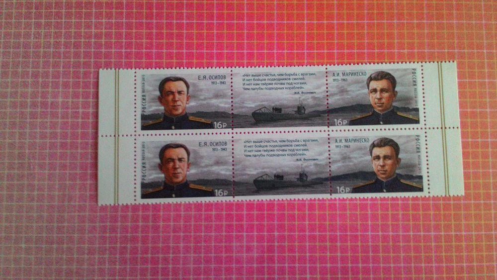 Россия, 2015. Марки серии "Герои-подводники". Две сцепки с купонами.