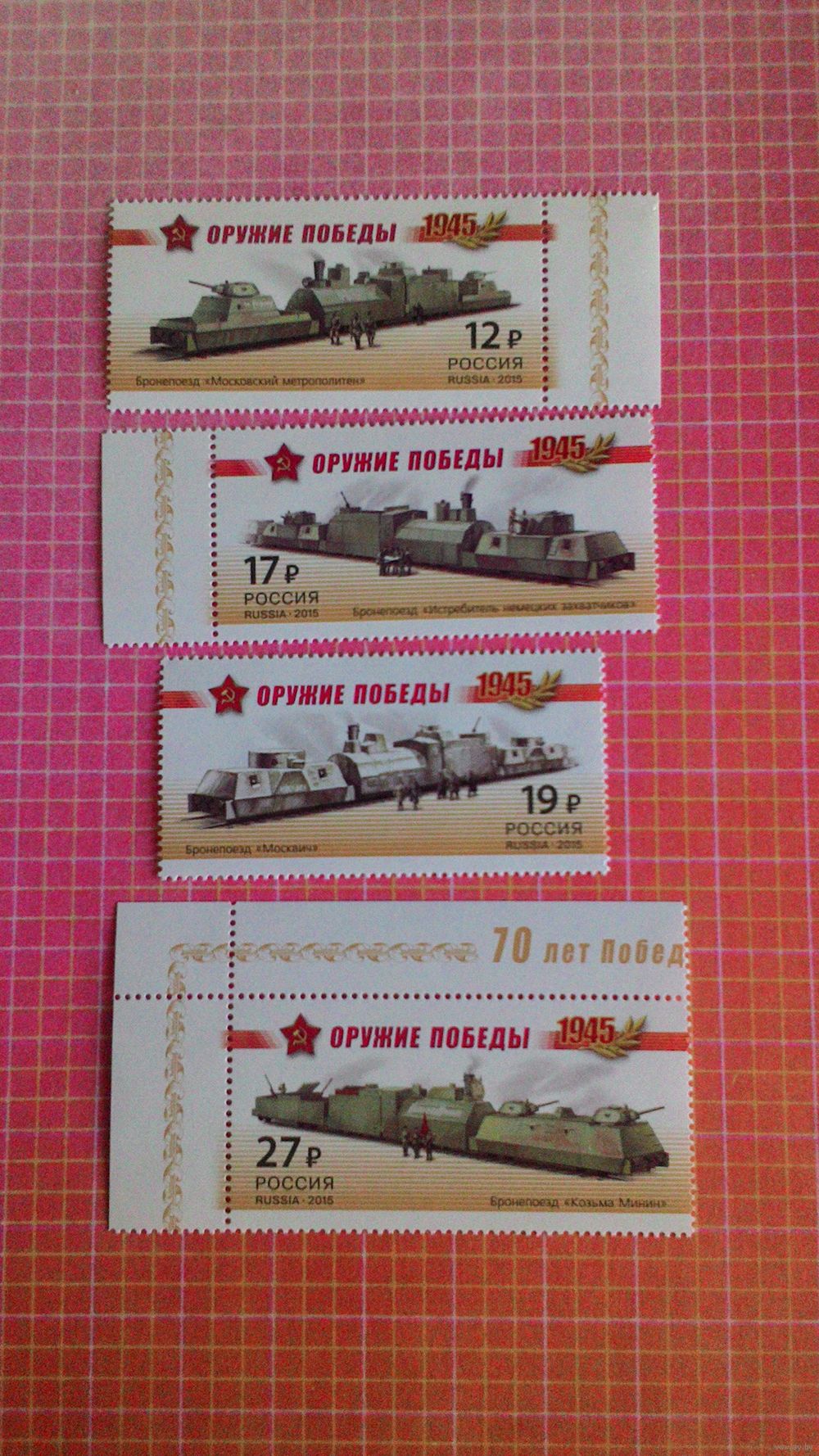 Россия, 2015. Марки серии "Оружие Победы. Бронепоезда".