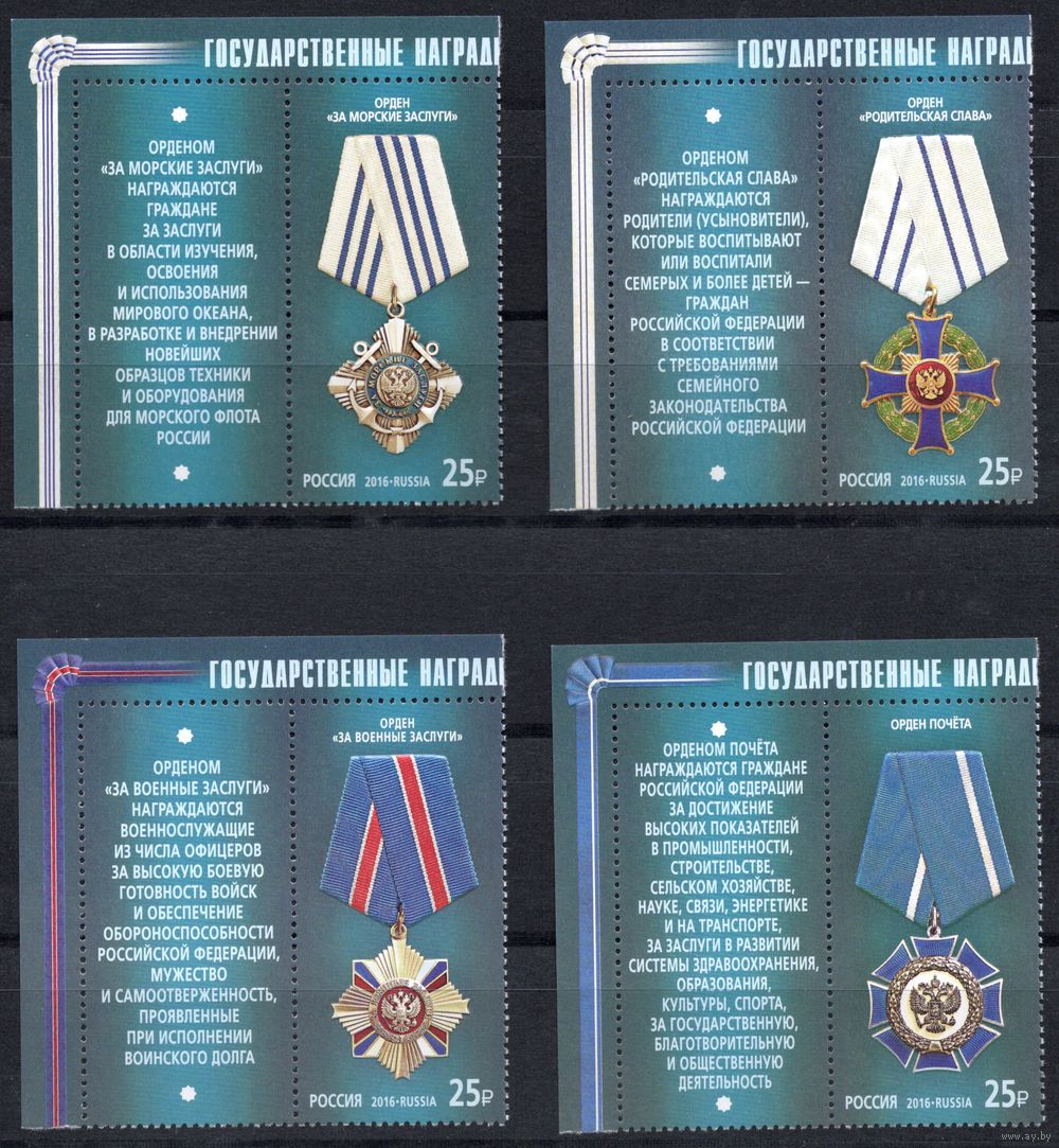 Россия 2016. Государственные награды РФ. 4 марки+купон 2111-14 (1378)