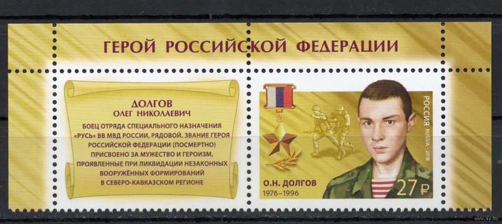 Россия 2018. Герой Россиии 1 марка+купон 2390 (1669)