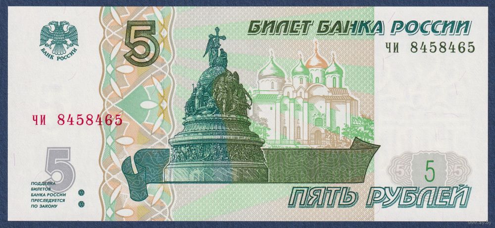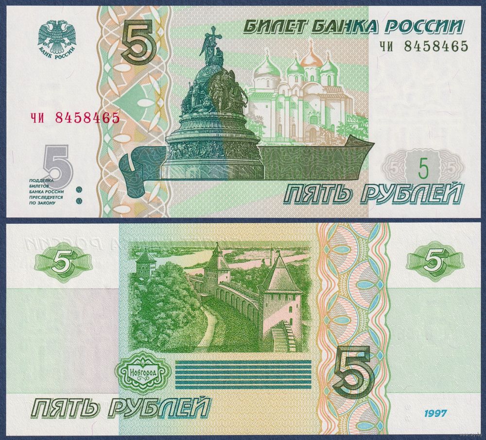 Россия, 5 рублей 1997 (2022) г, P-267 (серия чи), UNC