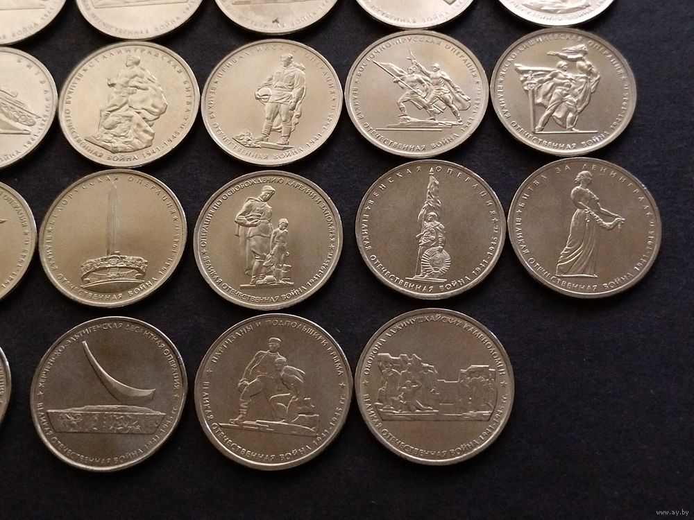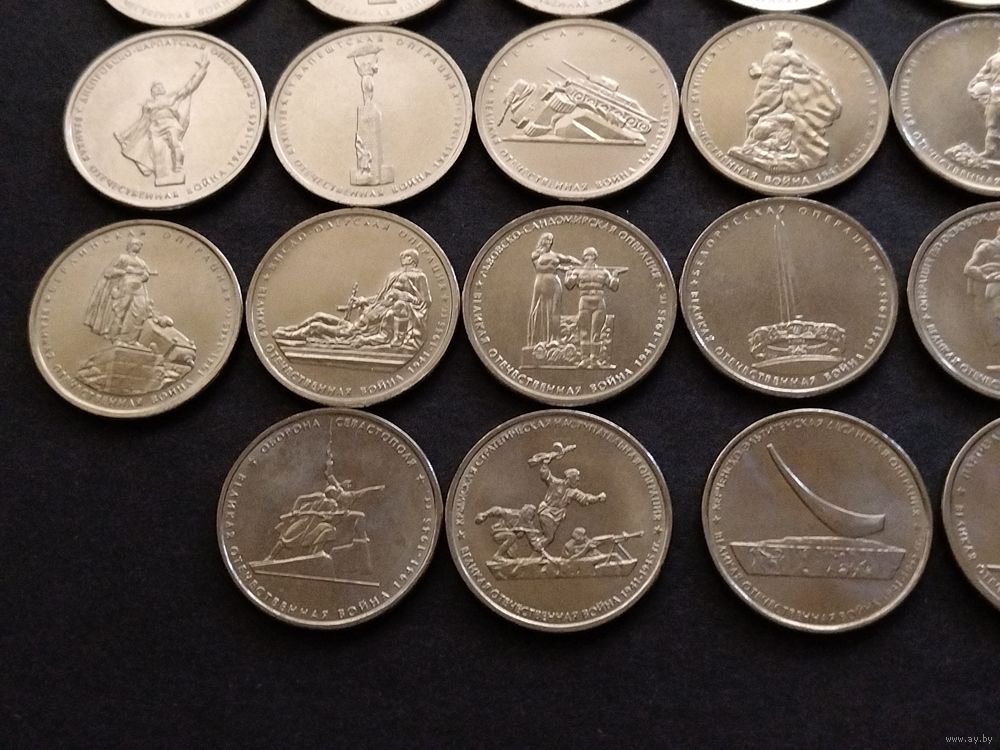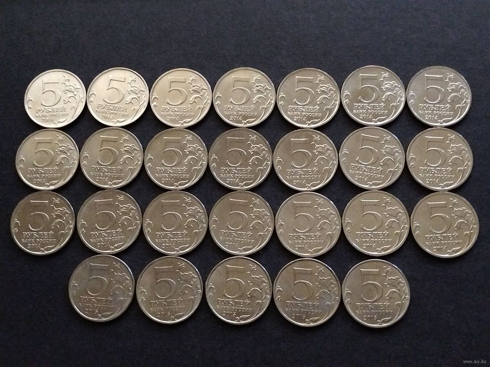 Россия 5 рублей 2014-2015 70-летие Победы в ВОВ + Освобождение Крыма