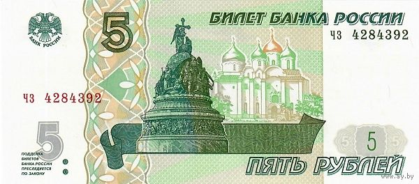 Россия 5 рублей образца 1997(2022) года UNC серия ЧГ