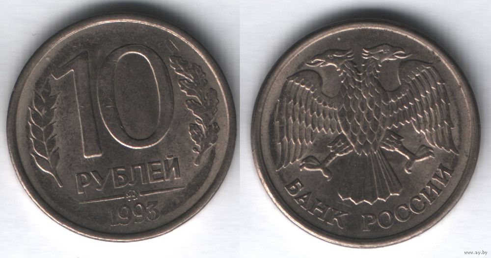Россия _y313 10 рублей 1993 год ММД y313a (нов.тип) магнит (проверить на магнит (nf01