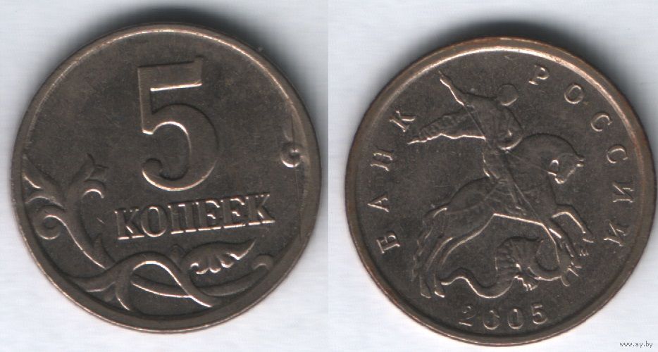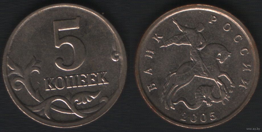 Россия _y601 5 копеек 2005 год mw2 М шт.1.2А (nf01
