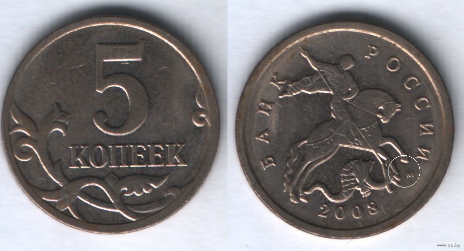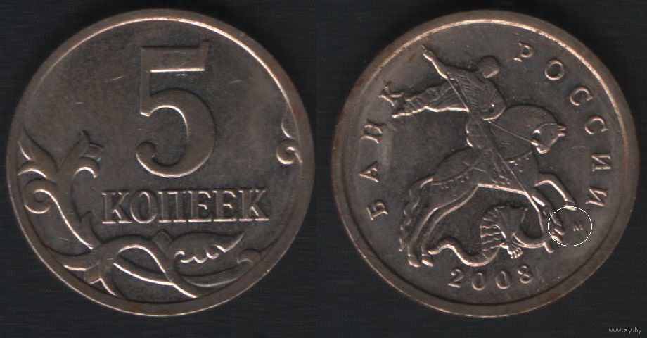 Россия _y601 5 копеек 2005 год mw2 М шт.1.2Б (nf01