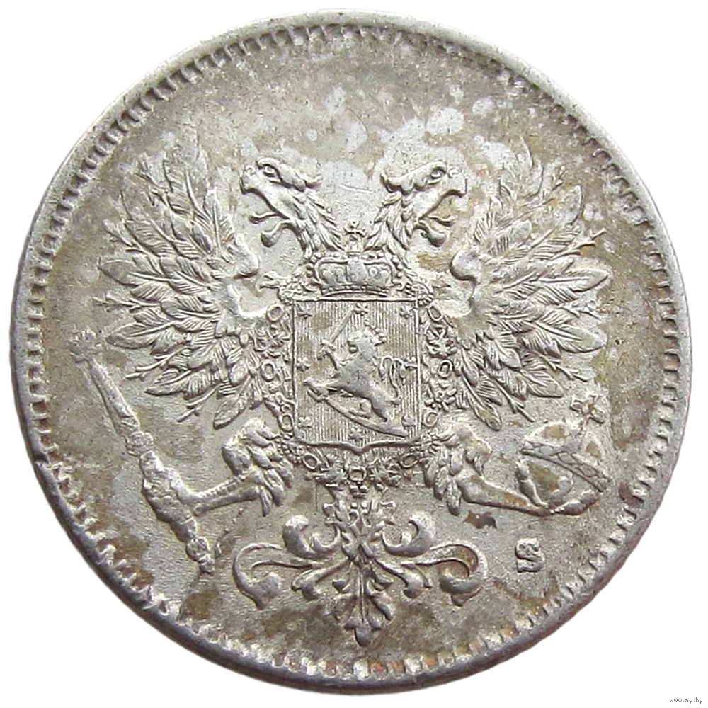 Россия для Финляндии, 25 пенни 1917 г. (S), сост. AU, без короны, серебро 750/ 1,27 г. Биткин #GSF2