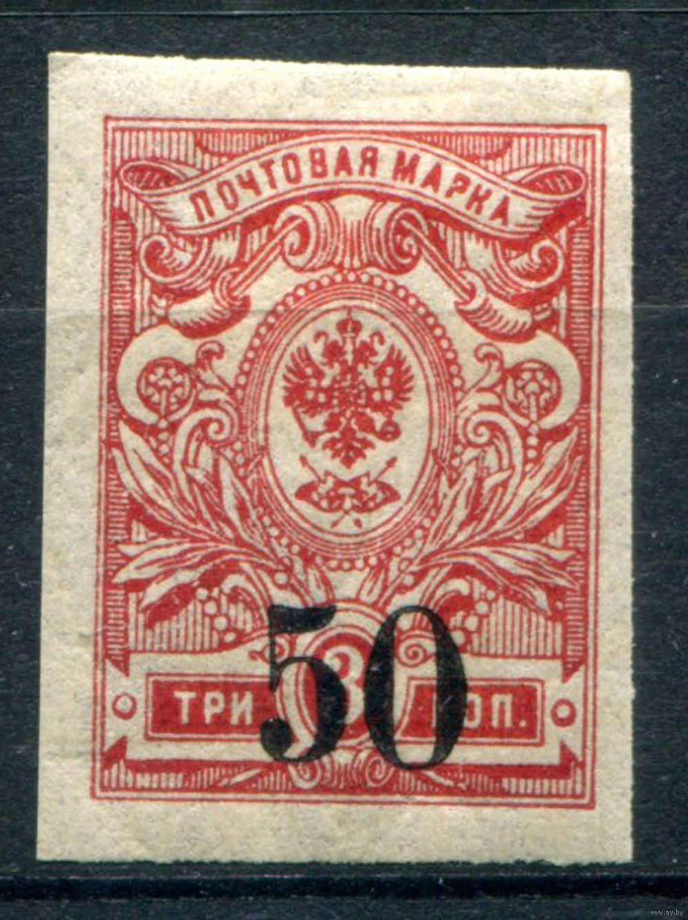 Россия, гражданская война - 1919/20г. - Омск, адмирал Колчак, без перфорации, 50 коп - 1 марка - MH. #O-W-98-B-2