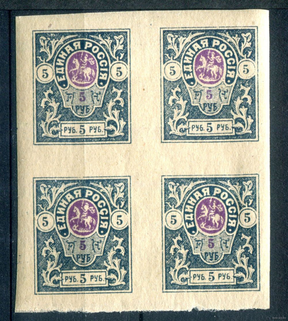 Россия, гражданская война - 1920г. - армия Юга, генерал Деникин. Единая Россия, 5 руб - 1 кварт - MNH с дефектом клея. #4-W2-118-A-2