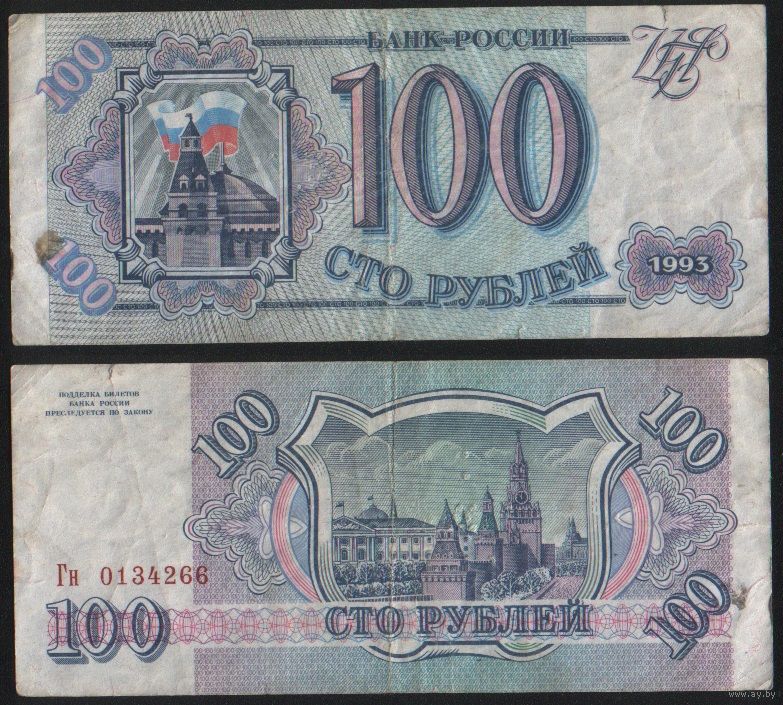 Россия P-254a.2 100 рублей 1993 год строчная-прописная Аа-Оа ' Гн 0134266 ТОРГ/ВАША ЦЕНА