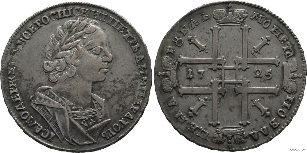 Великолепный по состоянию крестовик Петра 1 1725 год тип с надписью ВСЕРОСИIСКИI